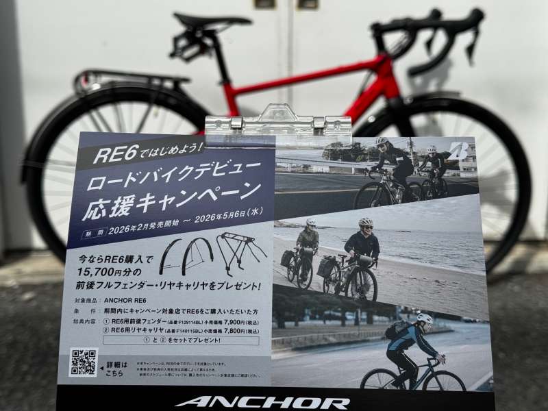 RE6ではじめよう! ロードバイクデビュー応援キャンペーン 今ならRE6購入で15,700円分の「前後フルフェンダー・リヤキャリヤ」をプレゼント! 期間 2026年2月発売開始~2026年5月6日(水) 詳細はこちら