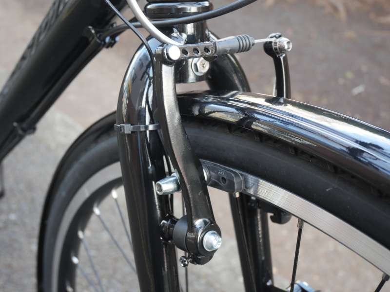 前ブレーキには、制動力に優れたVブレーキを採用しています。クロスバイクで広く使われている方式で、軽い力でもしっかりと制動できるのが特長です。