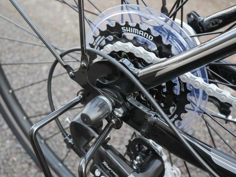 チェーンケースの設定がない/装着されていないスポーツバイクの場合、後からの取付けについてはチェーンケースの長さとフレームの長さ、規格等が合致しない事の方がほとんどのため、原則的に付けることができません。