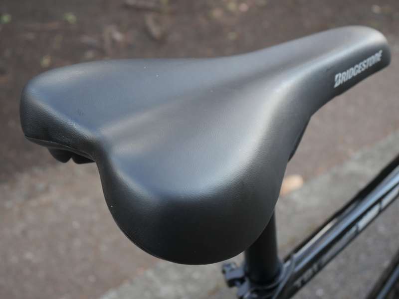 サドルは一見するとスポーティーなデザインですが、実際に座ってみると柔らかく、普段着や制服で使用した際にもお尻が痛くなりにくい配慮が施されています。