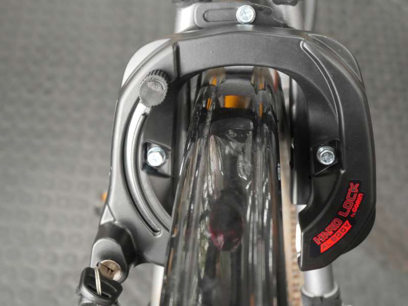 スポーツバイクでは持運びに困ることの多いロックも、TB1はフレームに標準装備されています。サークルロック本体は頑丈な構造になっており、ロックキーはスペアキーを含めて3本付属しています